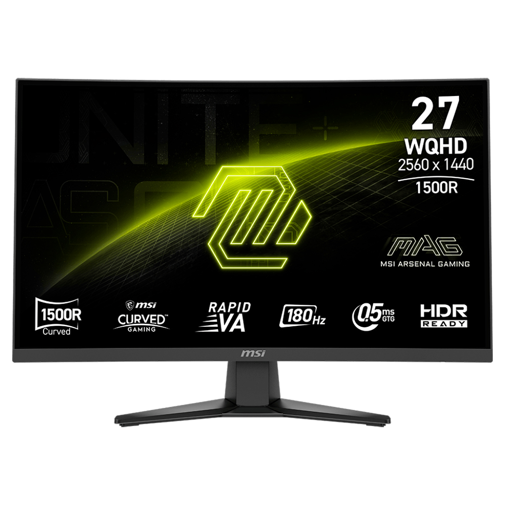 Monitor Msi Mag 275CQF E18 Curvo 27" 2K WQHD (2560 x 1440), 0.5MS, 180HZ, IPS, 2xHDMI 2.0, 1xDisplayPort 1.4, 1xConector de Audio, Preto