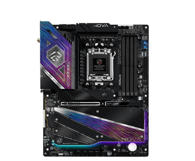 Placa Mãe AM5 Asrock X870 Nova Wifi 4xDDR5, 2xHyper M.2 NVMe, 3xM.2 NVMe 1xHDMI, 2xUSBC 3.2, 4xUSB-A 2.0, 4xUSB-A 3.2, 1xRJ45 Gigabit 2.5, 1xAudio, ATX