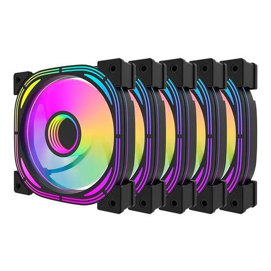 Cooler Fan de Gabinete Kit com 5, Aigo Darkflash INF 24 Pro, ARGB 5V, ARGB 3-pinos/PWM 4-pinos, 120mm, sem Controlador, Preto