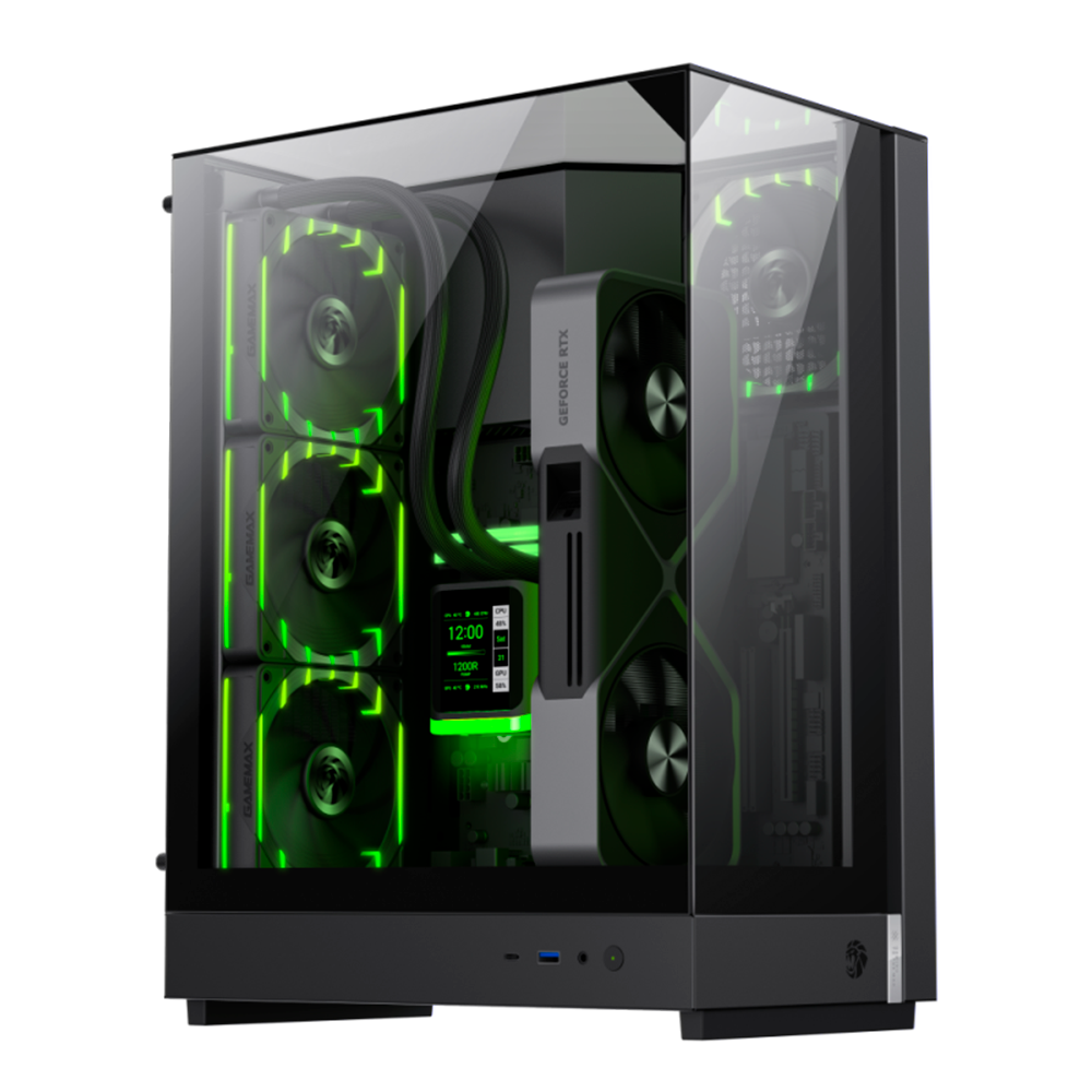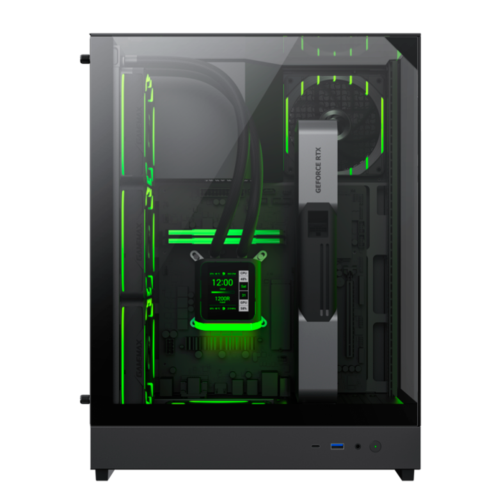 Gabinete Gamer, Aquario, Gamemax T20, Mid Tower, BTF, ARGB, M-ATX (SFX), Topo, Frontal e Lateral Vidro Temperado, Sem Fans, Preto