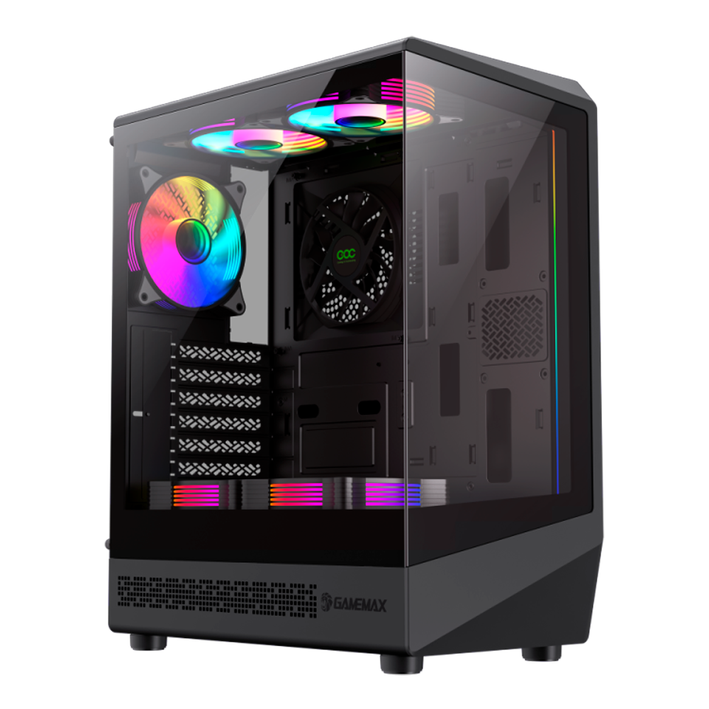 Gabinete Gamer, Aquario, Gamemax Vista Coc, Mid Tower, ARGB, ATX, Frontal e Lateral Vidro Temperado, 5x Fans, Preto 120mm ARGB