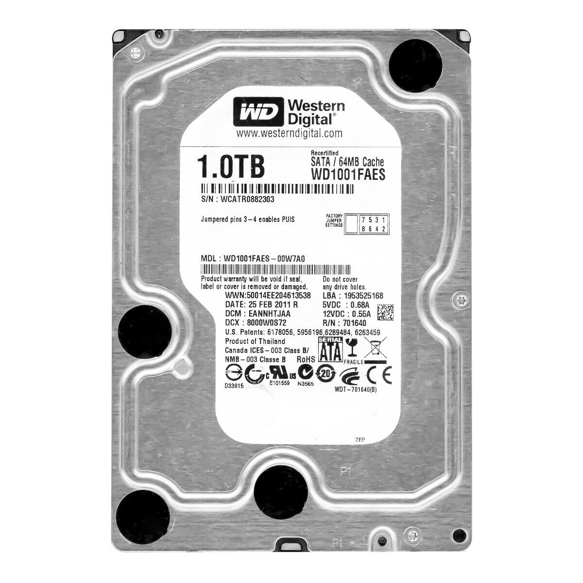 HD SATA3 1TB WD WD1001FAES 7200RPM PULL S/GARANTIA WESTERN DIGITAL