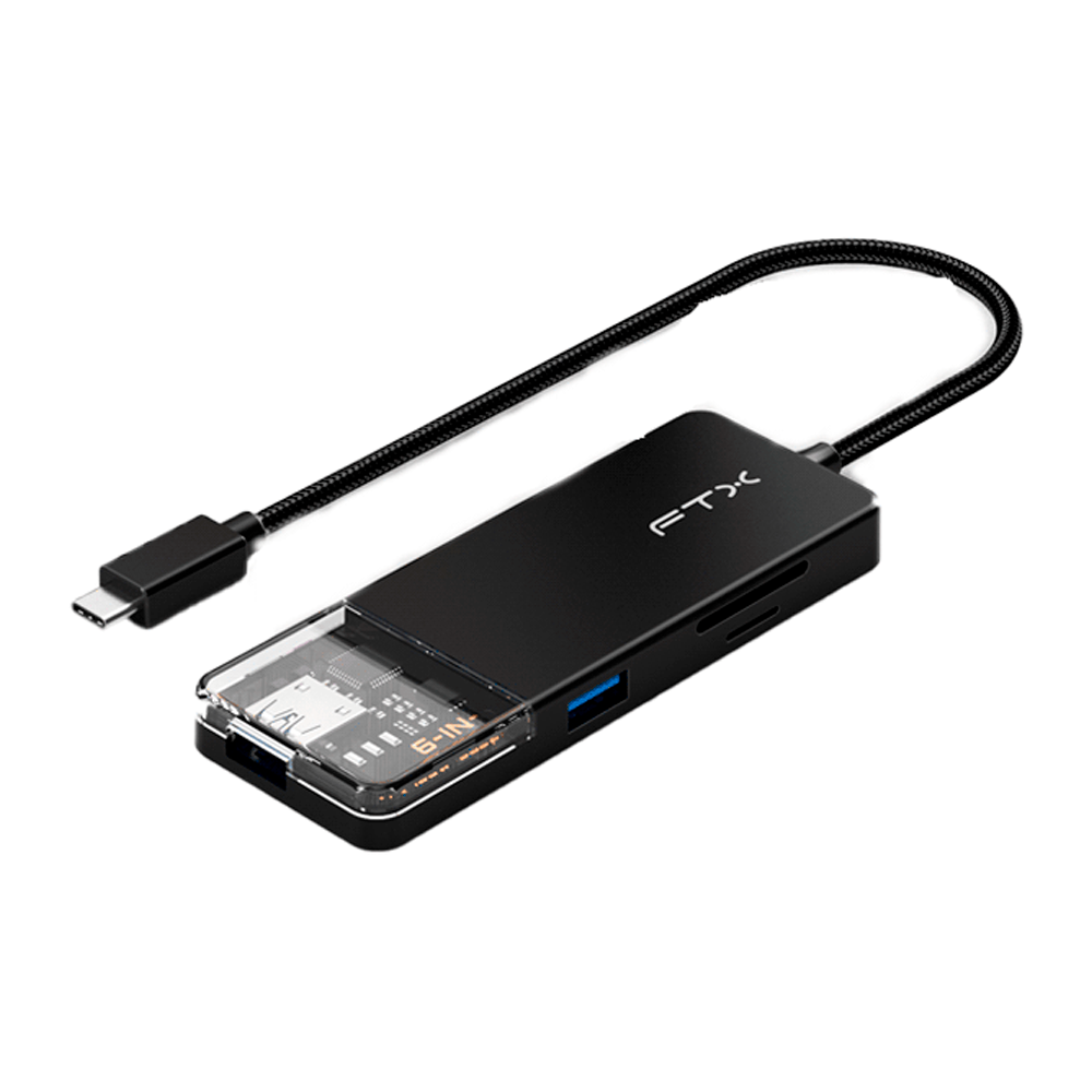 HUB USB-C FTX CT-HUBT4-PB 6EN1 4K/30HZ/5GBPS PRETO