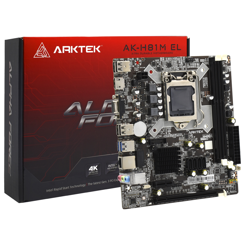 Placa Mãe 1155 Arktek AK-H61M EL 2xDDR3, 1xVGA D-Sub, 1xHDMI, 6xUSB-A 2.0, 1xRJ45 Gigabit, 1xAudio, M-ATX