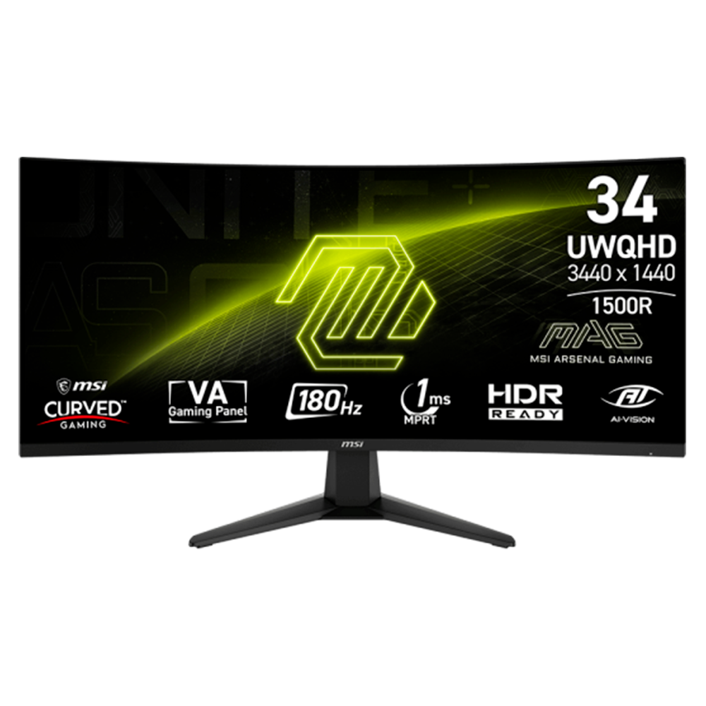 Monitor Msi Mag 346CQ Curvo 32" UltraWide UWQHD (3440 x 1440), 1ms, 180HZ, 2xHDMI 2.0, 1xDisplayPort 1.4, 1xConector de Audio, AMD FreeSync Premium, Speaker 2Wx2, Preto
