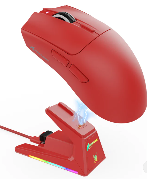 Mouse Gamer sem fio ATTACK SHARK X1 PAW-3395PRO Trimodo USB-C BT 2.4Ghz Red com Base