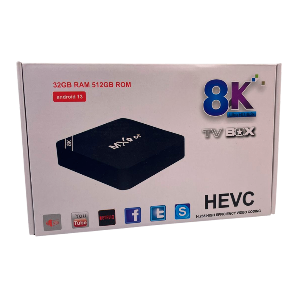 RECEPTOR TV BOX MX9 5G 8K 32GB/512GB/BLACK HEVC