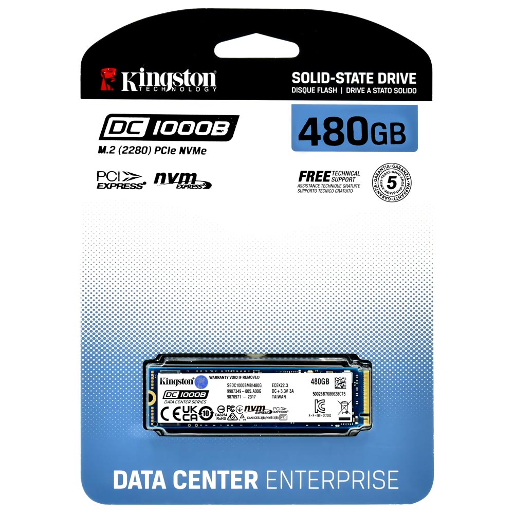 SSD Kingston DC1000B, 480GB, M.2 NVMe, Leitura 3200MB/s, Gravação 565MB/s, SEDC1000BM8/480G, p/Servidor