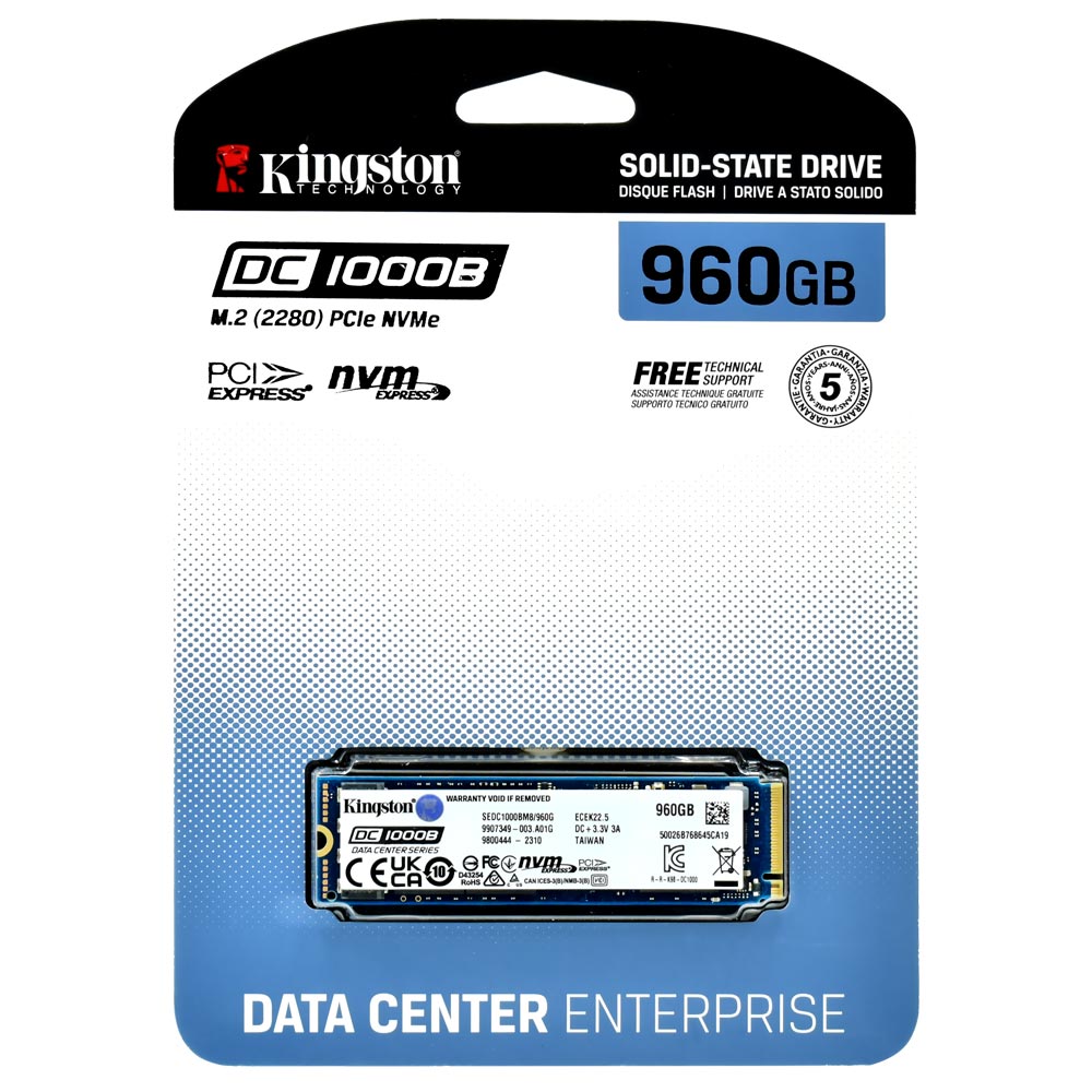 SSD Kingston DC1000B, 960GB, M.2 NVMe, p/Servidor, Leitura 3200MB/s, Gravação 565MB/s, SEDC1000BM8/960G