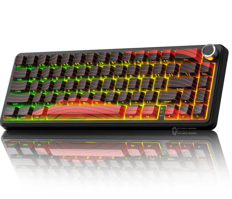 Teclado Game Magnetico sem fio 60% Attack Shark X65PRO HE, Tri-modes, USB-A/USB-C/Bluetooth/Wifi 2.4Ghz, RGB, Inglês, Black and red contour lines