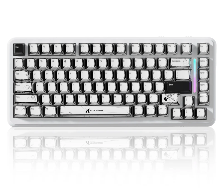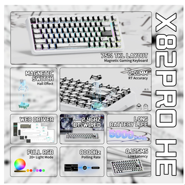 Teclado Game Magnetico sem fio 75% Attack Shark X82 PRO HE, Tri-modes, USB-A/USB-C/Bluetooth/Wifi 2.4Ghz, RGB, Inglês, Comic White