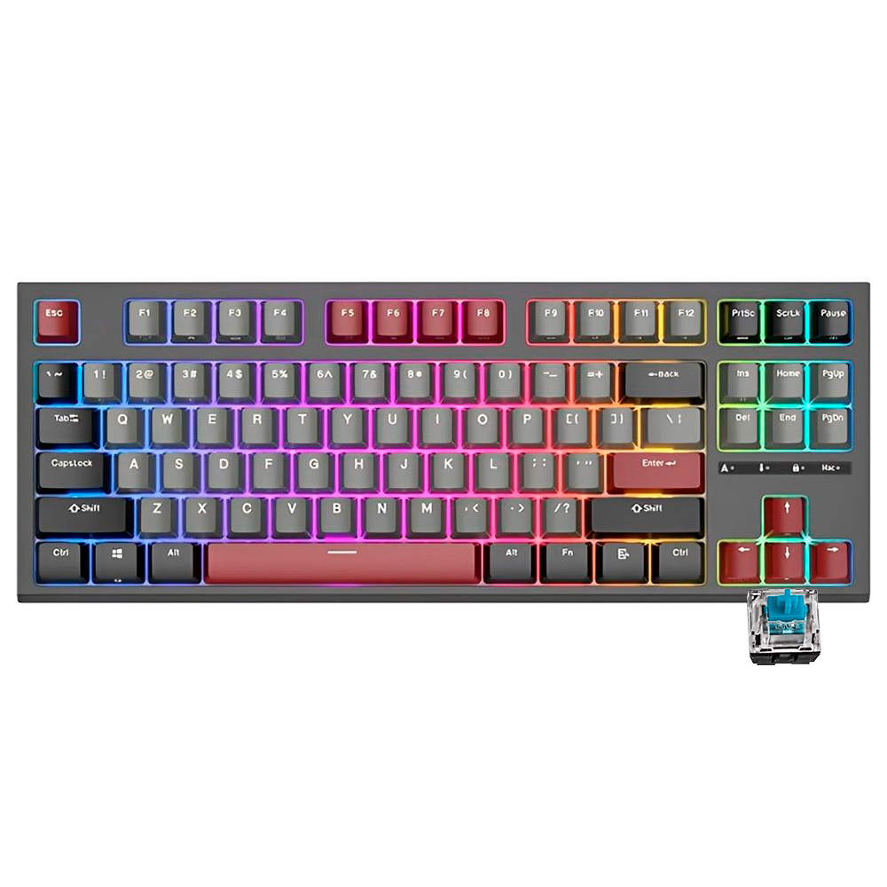 Teclado Mecânico Royal Kludge RKR87, 75%, RGB, Tátil, com Fio, Switch Blue, RKR87-BLAC-Q, Preto