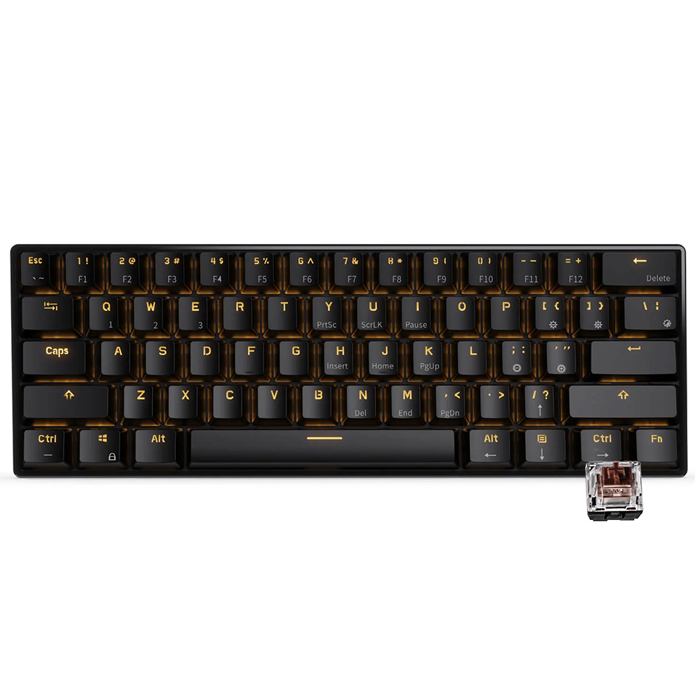 Teclado Mecanico sem fio 60% Royal Kludge RK61 QMK Tri-modes IBM61K, USB-A/USB-C/Bluetooth/Wifi 2.4Ghz, RGB, Switch Brown, Inglês, Preto