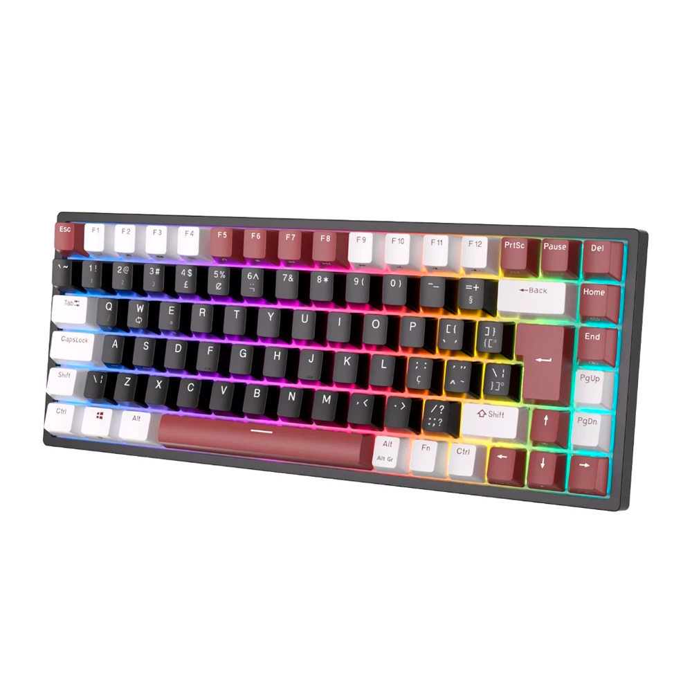 Teclado Mecanico sem fio 75% Royal Kludge RK84 Tri-modes IBM85K-BP, USB-A/USB-C/Bluetooth/Wifi 2.4Ghz, RGB, Switch Red, Portugues, Warriors