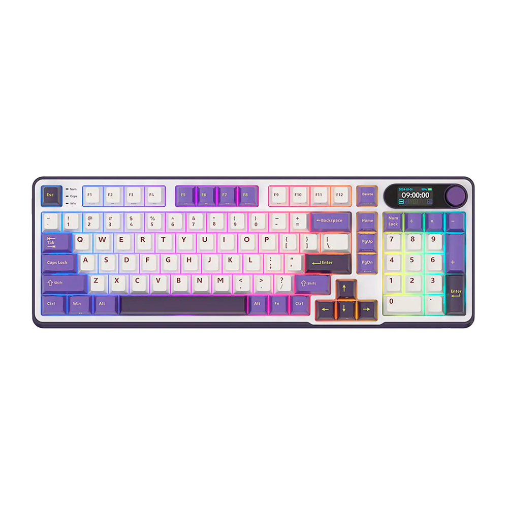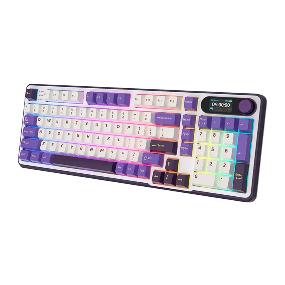 Teclado Mecanico sem fio 96% Royal Kludge RK-S98 Tri-modes IBM99K-SP, USB-A/USB-C/Bluetooth/Wifi 2.4Ghz, RGB, Switch Chartreuse, Espanhol, Blackberry Mousse