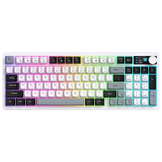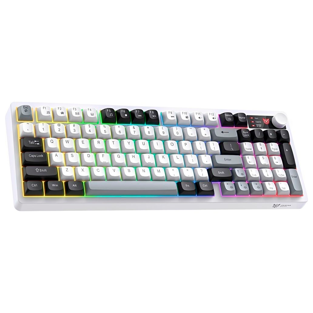 Teclado Onikuma MT902, 65% Sem Fio USB-C, Semi-Mecânico Membrana, Cinza/Preto/Branco, Inglês