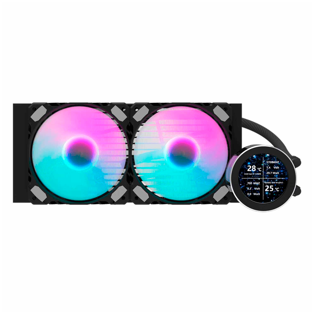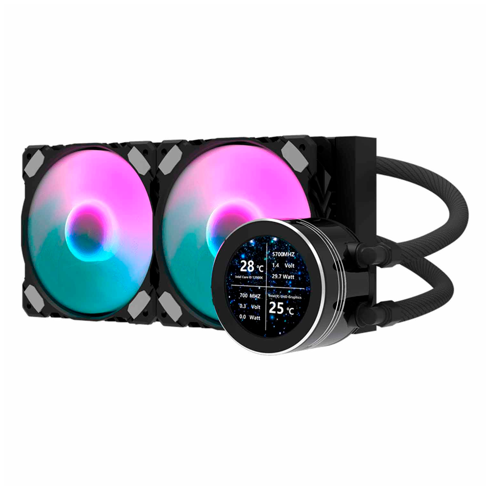 Water Cooler CPU Aigo Darkflash Nebula DN240S 2.1" IPS display Liquid, ARGB, Preto, 240MM, Intel 115X/1200/1700, AMD AM3+/AM4/AM5